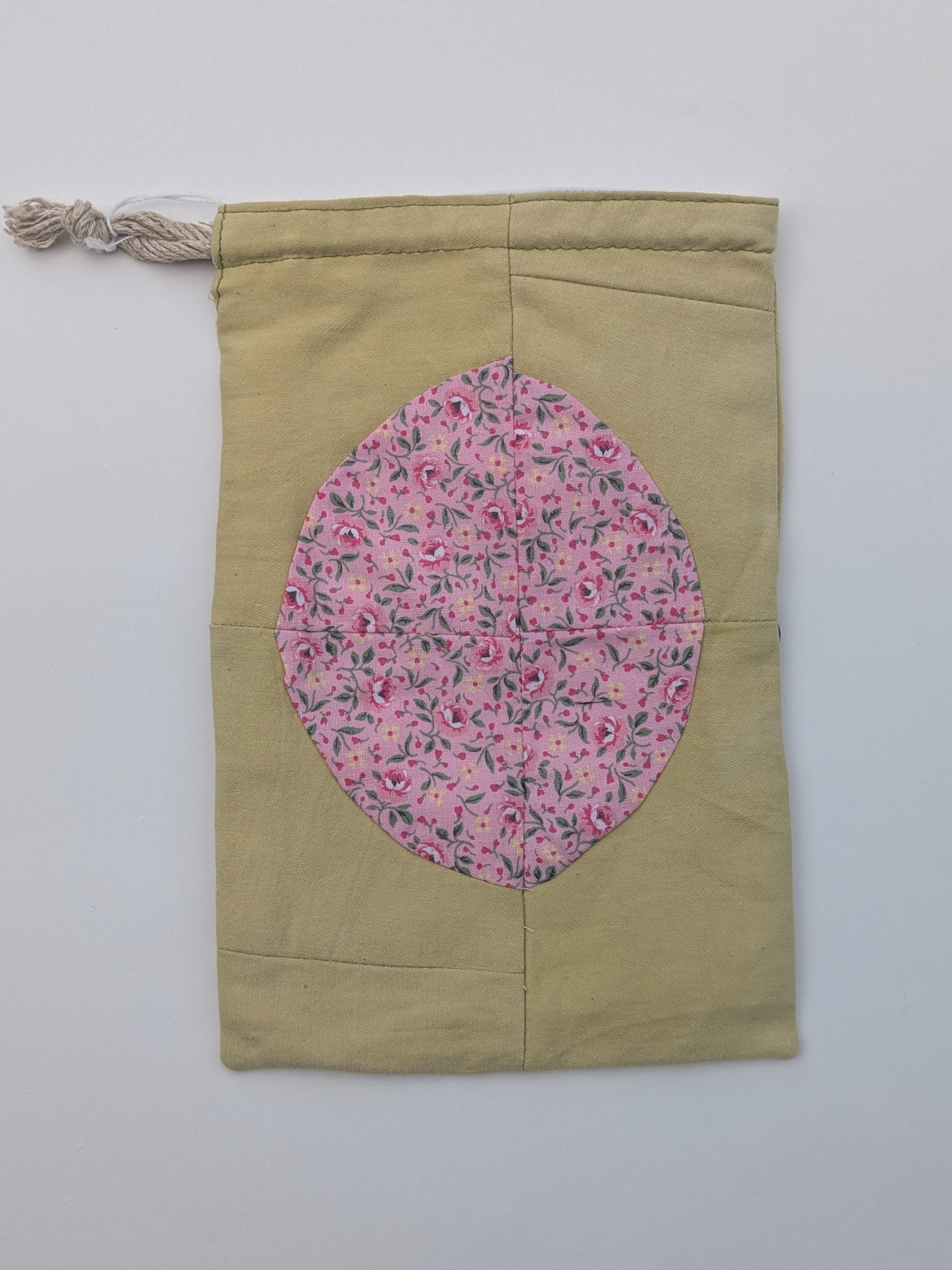 Handmade drawstring bag. Fully lined and made with naturally dyed fabric.